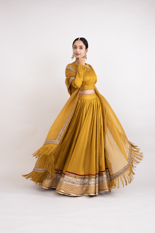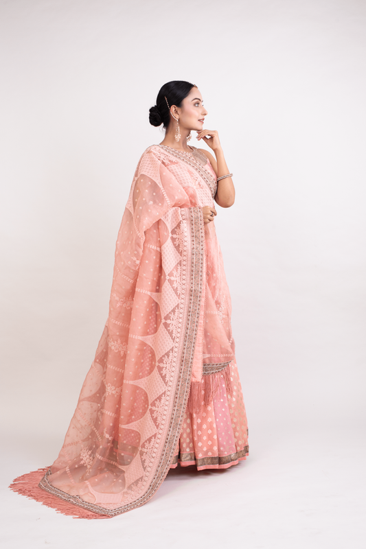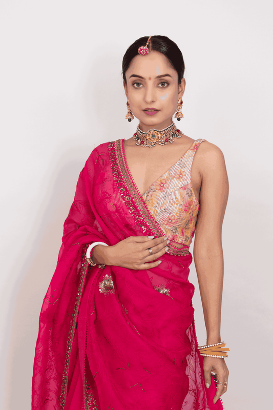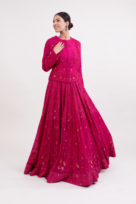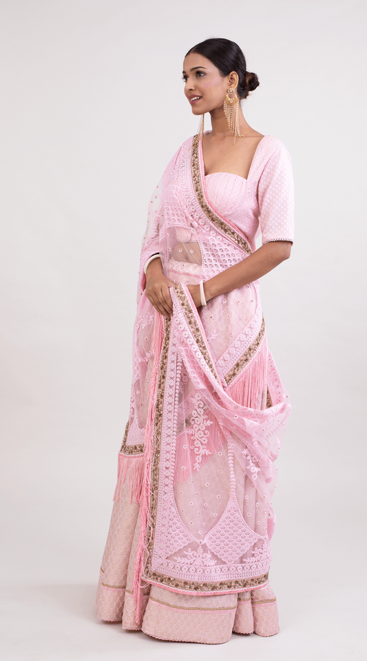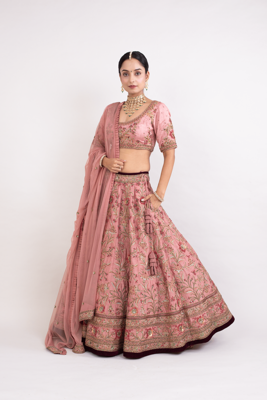 FS 105 // Uns gulabi sweetheart blouse with lehenga.