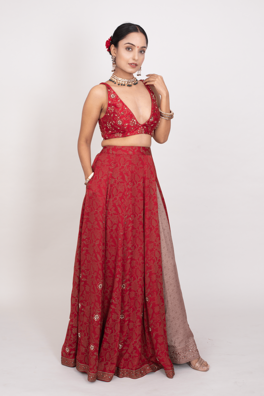 FS 117// Maroon blouse with cotton modal printed lehenga